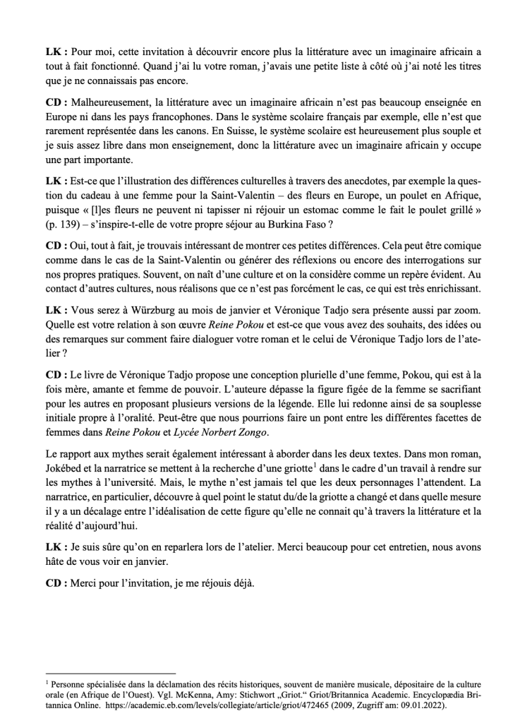 Interview portant sur Lycée Norbert Zongo, le 3 décembre 2021 pour l’Université de Würzburg.